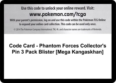 Code Card Phantom Forces Collectors Pin 3 Pack Blister Mega Kangaskhan — XY - Phantom Forces | TCGSignal | TCGSignal